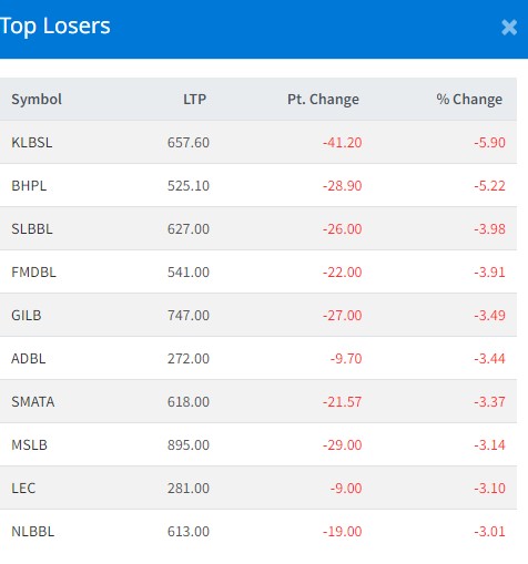 त्यसैगरी आज सबैभन्दा धेरै किसान लघुवित्त वित्तीय संस्था र बराही हाइड्रोपावर कम्पनीका लगानीकर्ताले गुमाएका छन् । यस कम्पनीका लगानीकर्ताले ५ प्रतिशतभन्दा बढीका दरले गुमाएका हुन् ।