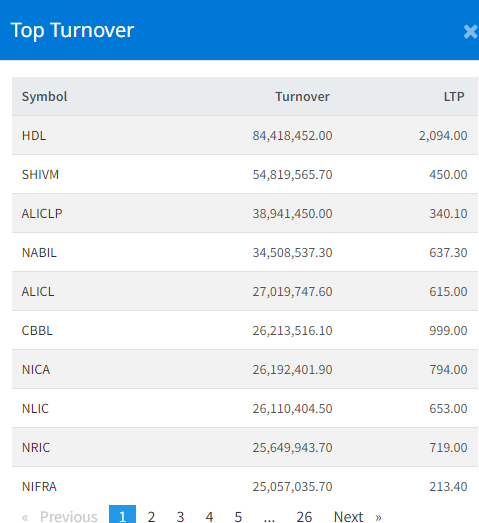 आज दिनभरिमा २५९ कम्पनीको ३८ लाख ३२ हजार ४५९ कित्ता शेयर किनबेच हुँदा १ अर्ब ३९ करोड २३ लाख ५४ हजार रुपैयाँको शेयर कारोबार भएको छ । आज सबैभन्दा धेरै हिमालयन डिष्टिलरीको शेयर कारोबार भएको छ । आज कम्पनीको ८ करोड ४४ लाख रुपैयाँको शेयर कारोबार भएको छ ।