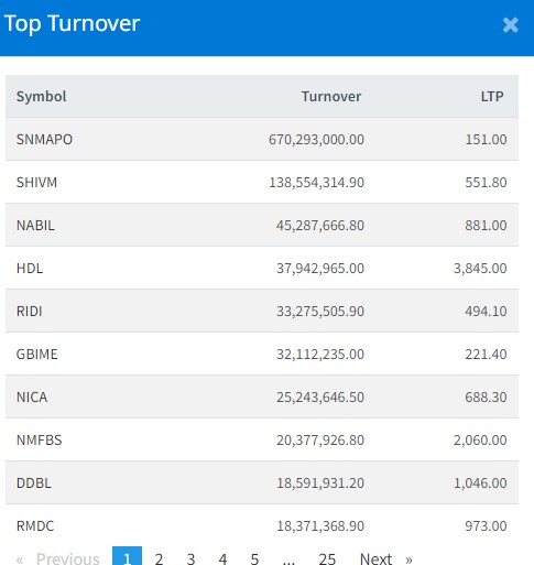 त्यस्तै, नविल बैंकको ४ करोड ५२ लाख रुपैयाँको शेयर कारोबार भएको छ । हिमालयन डिष्टिलरीको ३ करोड ७९ लाख रुपैयाँको शेयर कारोबार भएको छ ।