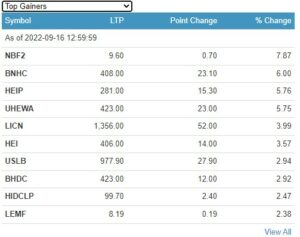 यसैगरी बुद्धभूमि नेपाल हाइड्रोपावर कम्पनीका लगानीकर्ता पनि धेरे कमाएका छन् आज कम्पनीको शेयर ६ प्रतिशतले बृद्धि भएको छ भने प्रति शेयर मूल्य ४०८ रुपैयाँ कायम भएको । आज अप्पर हेवाखोलाको शेयर ५ दशमलव ७५ प्रतिशतले बृद्धि भएको छ भने प्रति शेयर मूल्य ४२३ रुपैयाँ कायम भएको छ ।