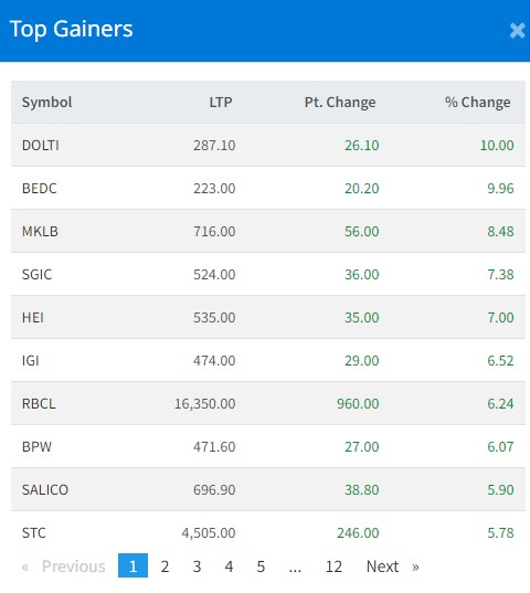 यसैगरी आज भूगोल इनर्जी डेभलपमेन्ट कम्पनीको शेयर ९.९६ प्रतिशतले बृद्धि भएको छ भने प्रति शेयर मूल्य २२३ रुपैयाँ कायम भएको छ । साथै मनकामना स्मार्ट लघुवित्त वित्तीय संस्थाको शेयर ८.४८ प्रतिशतले बृद्धि हुँदा प्रति शेयर मूल्य ७१६ रुपैयाँ कायम भएको छ ।