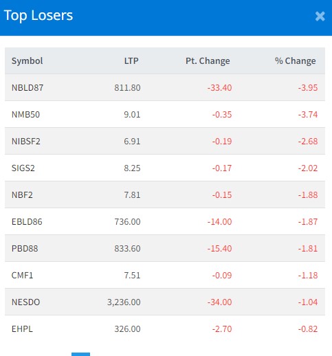 आज सबैभन्दा धेरै नेपाल बैंकका डिबेञ्चर इकाईधनीले गुमाएका छन् । बैंकका डिबेञ्चर इकाईधनीले ३ प्रतिशतका दरले गुमाएका हुन् ।