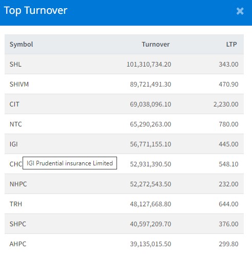 बजार सामान्य बढ्दा यी हुन् टप टेन कारोबार भएका कम्पनी