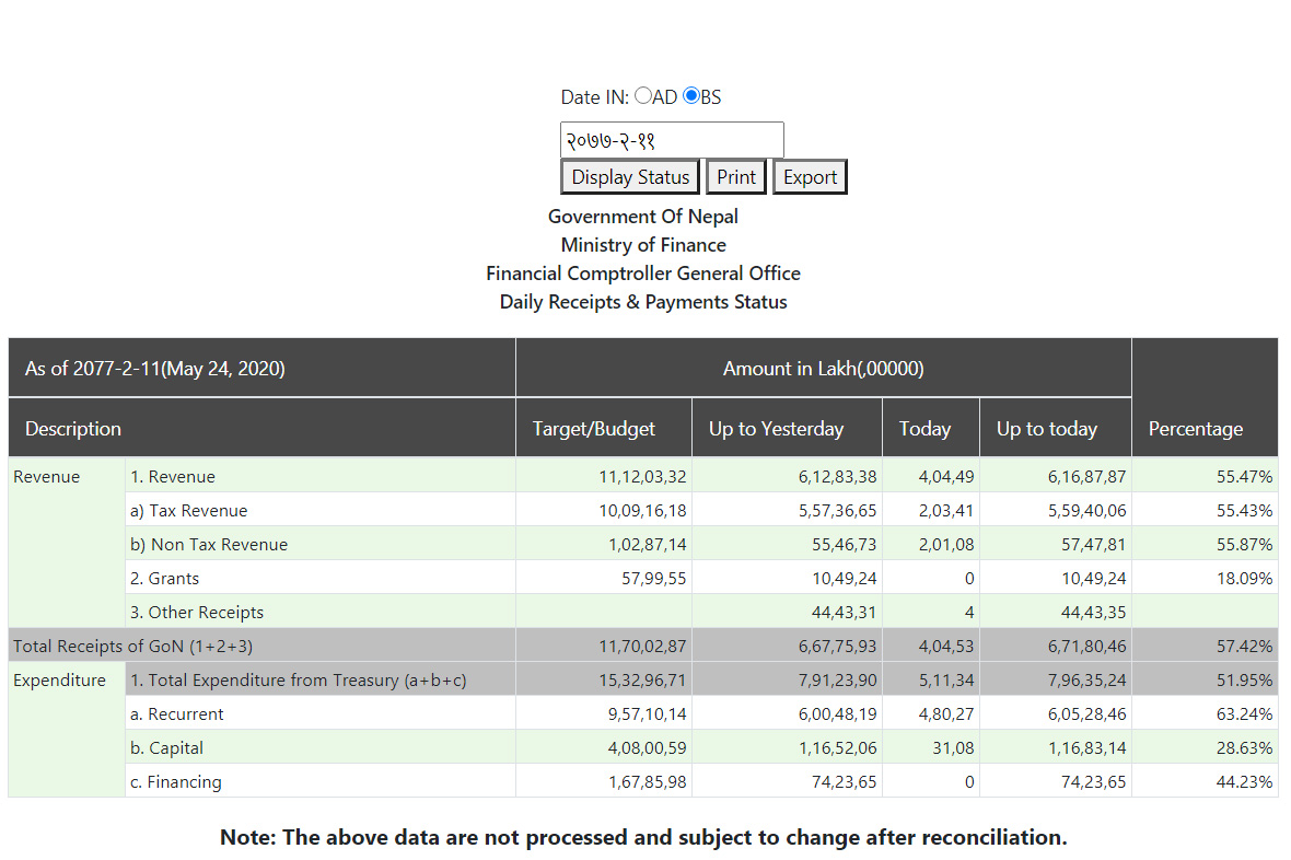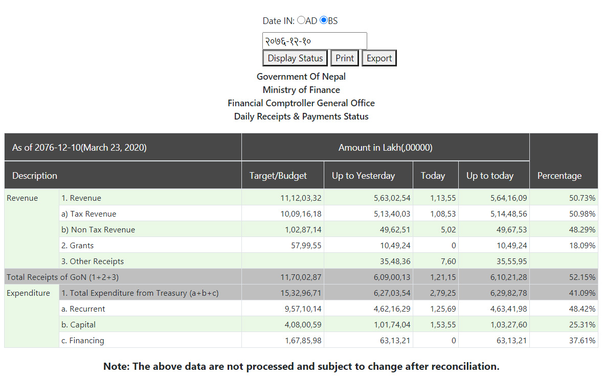 चालु आर्थिक वर्षमा चालु खर्चकै लागि सरकारलाई ९५७ अर्ब रुपैयाँ बजेट आवश्यकता पर्दछ । कर्मचारी, स्थानीय निकायलाई दिइने अनुदान समेतको सो रकम अब कहाँबाट जुटाउने सरकार तनावमा छ । ४०० अर्बको विकास खर्च गर्न लक्ष्य लिएको सरकारले ११६ अर्ब मात्रै खर्च गरेको आर्थिक अभाव हुने भएपछि सम्भवतः विकास खर्च पनि प्रभावित हुनेछन् । चालु खर्च पनि ६०५ अर्ब गरिसकेको छ । हालसम्म ६७१ अर्ब राजश्व उठाएर ७९६ अर्ब रुपैयाँ खर्च गरिसकेको सरकारले अझै कम्तीमा ३५२ अर्ब रुपैयाँ चालु खर्च गर्नुपर्ने दवावमा परेको छ । यद्यपि केही खर्च कटौति गर्दा पनि २०० अर्ब कम्तीमा चाहिने देखिन्छ ।