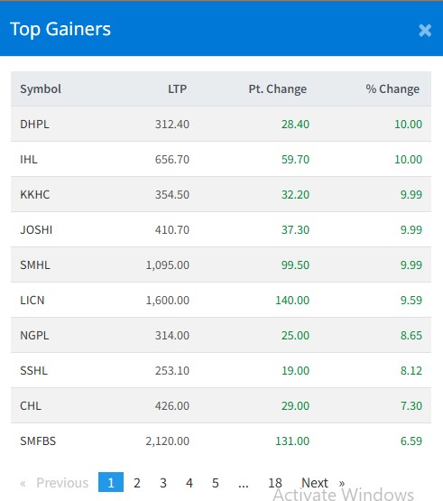 आज सबैभन्दा धेरै दिव्यश्वरी हाइड्रोपावर र इङवा हाइड्रोपावरका लगानीकर्ताले कमाएका छन् । आज यी २ कम्पनीका लगानीकर्ताले १० प्रतिशतका दरले कमाएका छन् । खानीखोला हाइड्रोपावर, जोशी हाइड्रोपावर र सुपरमादी हाइड्रोका लगानीकर्ताले ९ दशलमव ९९ प्रतिशतका दरले कमाएका छन् ।