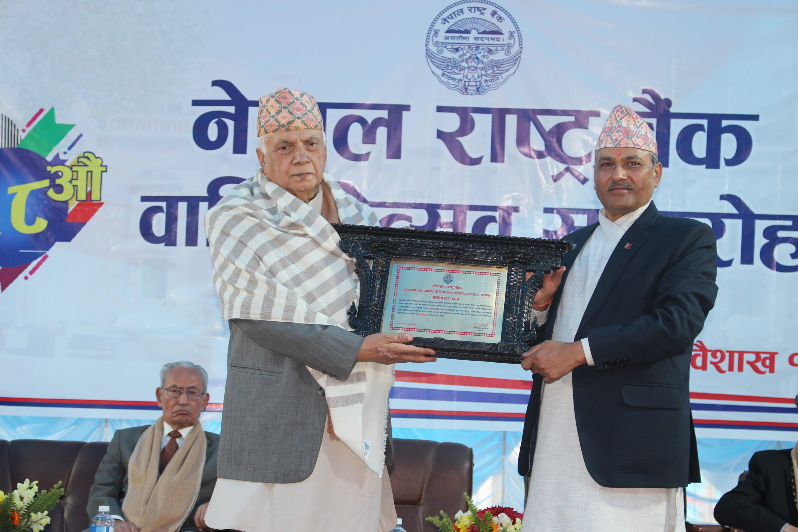 बैंकको वार्षिकोत्सवका अवसरमा प्रत्येक वर्ष एक जना पूर्व गभर्नरलाई सम्मान गर्ने परम्पराबमोजिम यस वर्ष पूर्व गभर्नर विजयनाथ भट्टराईलाई सम्मान गरिएको छ । कार्यक्रममा गभर्नर महाप्रसाद अधिकारीले पूर्व गभर्नर भट्टराईलाई दोसल्ला ओढाएर कदरपत्र प्रदान गरेका छन् । पूर्व गभर्नर भट्टराईले २०६१ माघ १८ देखि २०६६ माघ १७ गतेसम्म बैंकको गभर्नरको जिम्मेवारी सम्हालेका थिए । नेपालको आर्थिक, मौद्रिक एवम् वित्तीय क्षेत्रको व्यवस्थापनमा पुर्याएको योगदानको कदरस्वरूप पूर्व गभर्नरलाई यसरी सम्मान गर्ने परम्परा रहँदै आएको छ ।