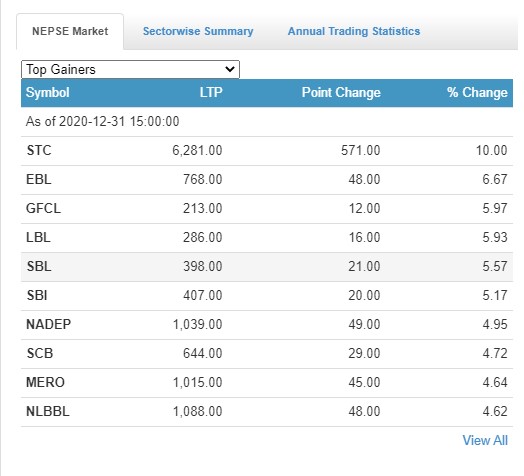 त्यस्तै, गुडबिल फाइनान्स, लक्ष्मी बैंक, सिद्धार्थ बैंक, नेपाल एसबिआई बैंक, नाडेप लघुवित्त, स्टान्डर्ड च्याटर्ड बैंक, मेरो माईक्रोफाइनान्स, नेरुड लघुवित्तका शेयरधनीहरूले सबैभन्दा धेरै आम्दानी गरेका छन् ।
