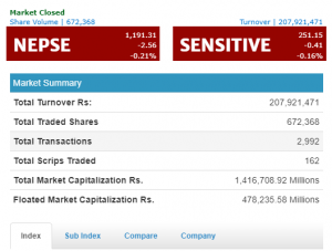 बिहीबार नेप्से २.५६ अङ्कले घटेर ११९१ को बिन्दुमा