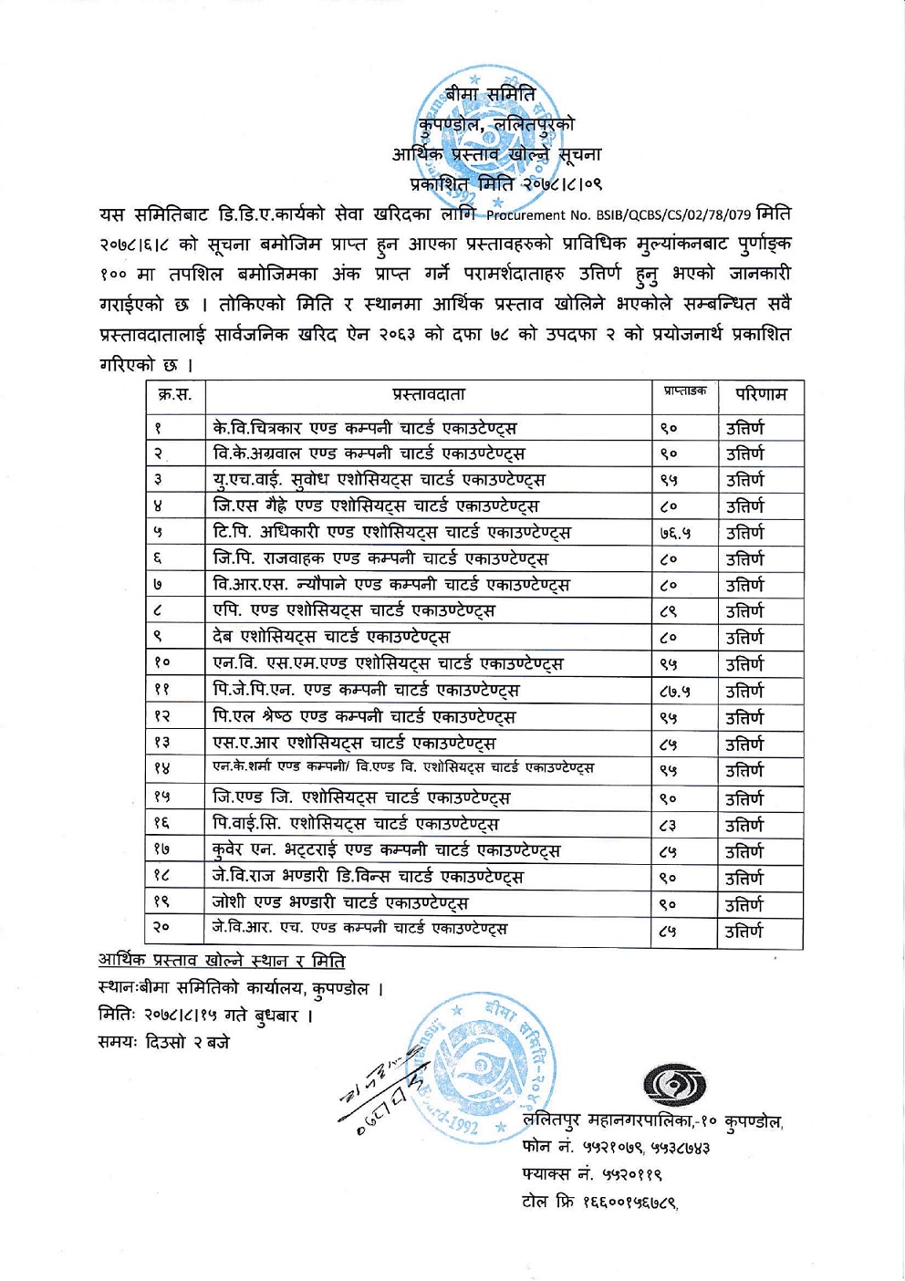 बीमा समितिले ८ बीमा कम्पनीको डिडिए गर्दै, चार्टर्ड एकाउन्टेन्सी फर्म सँग प्रस्ताव आह्वान