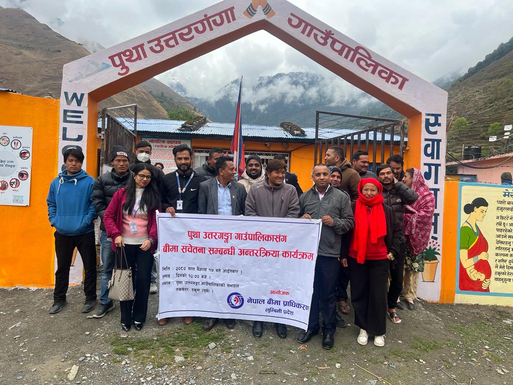 यसैगरी, पुथा उत्तरगङ्गा गाउँपालिकामा यही वैशाख १७ गते आयोजित कार्यक्रमा पुथा उत्तरगङ्गा गाउँपालिकाका अध्यक्ष पुनीराज घर्तीले बीमा सम्बन्धी सचेतनामूलक कार्यक्रम आयोजना गरी बीमाका बारेमा जानकारी दिएकोमा प्राधिकरणप्रति आभार प्रकट गरे ।
