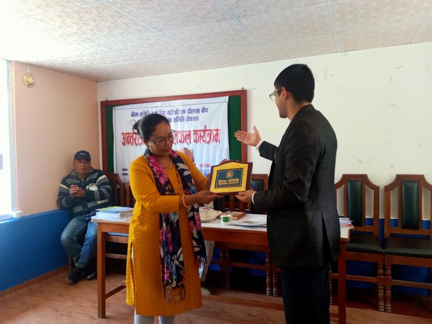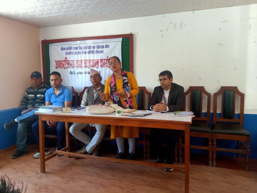 काठमाडौं । बीमा समितिले दोलखाको विगु गाउँपालिका र तामाकोशी गाउँपालिकामा बीमा सम्बन्धी अन्तर्क्रिया तथा छलफल कार्यक्रम सम्पन्न गरेको छ । बीमा समितिका उपनिर्देशक निर्मल अधिकारीको संयोजकत्वमा सम्पन्न भएको कार्यक्रममा स्थानीय निकायका जनप्रतिनिधि, प्रशासक, कर्मचारी, शिक्षक, व्यवसायी, स्थानीय तहका बीमा कम्पनीका शाखा प्रमुखहरु, किसान लगायतको उपस्थिति थियो ।