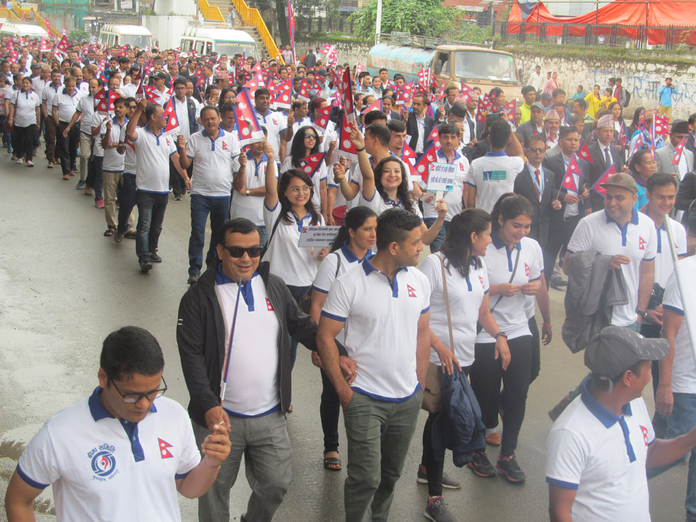 संविधान दिवस मनाउन शुक्रबार विहान ७ः३० बजे भद्रकालीमा जम्मा भएका बीमा सम्बद्ध उच्च अधिकारी तथा कर्मचारीहरु छातीमा नेपालको झण्डा अंकित टिसर्ट लगाएका सेता मानिसहरु हातमा नेपाली झण्डा हल्लाउँदै भद्रकालीदेखि र्यालीसहित विहान ८ः१५ बजे सैनिक मञ्च टुँडिखेलमा प्रवशे गरेका थिए । सैनिक मञ्च टुँडिखेलमा आयोजित कार्यक्रममा अन्य सरकारी निकायका भन्दा व्यवस्थित र प्रभावशाली उपस्थितिका कारण सैनिक मञ्चभित्र बीमा सम्बद्ध कर्मचारीहरुले ढाकेका थिए ।