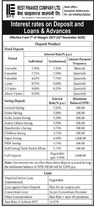बेष्ट फाइनान्सले प्रकाशन गर्यो नयाँ ब्याजदर