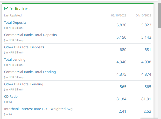 बैंकहरुमा ५८ खर्ब ३० अर्ब निक्षेप रहेको छ। एकै दिन बैंकहरुमा रहेको निक्षेप ७ अर्बले बढेको छ । वाणिज्य बैंकमा एकै दिनमा सो परिमाणमा निक्षेप वृद्धि हुँदा समस्त प्रणालीमा निक्षेप वृद्धि भएको हो ।