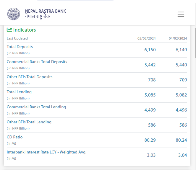 सोमबारसम्म वाणिज्य बैंकमा निक्षेप ५४ खर्ब ४२ अर्ब पुगेको छ भने वाणिज्य बैंकबाट ४४ खर्ब ९९ अर्ब कर्जा प्रवाह भएको छ।