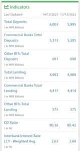 नेपाल राष्ट्र बैंकको तथ्यांकअनुसार बैंक तथा वित्तीय संस्थाहरुको कुल निक्षेप ६० खर्ब ३ अर्ब रुपैयाँ पुगेको छ। यो तथ्यांक गत मंसिर २८ गतेसम्मको हो। अघिल्लो दिन मंसिर २७ गतेसम्म बैंक तथा वित्तीय संस्थाको कुल निक्षेप ५९ खर्ब ९५ अर्ब रुपैयाँ रहेको थियो। यो १ दिनमा बैंकिङ प्रणालीमा ८ अर्ब रुपैयाँ निक्षेप थपिएको छ।