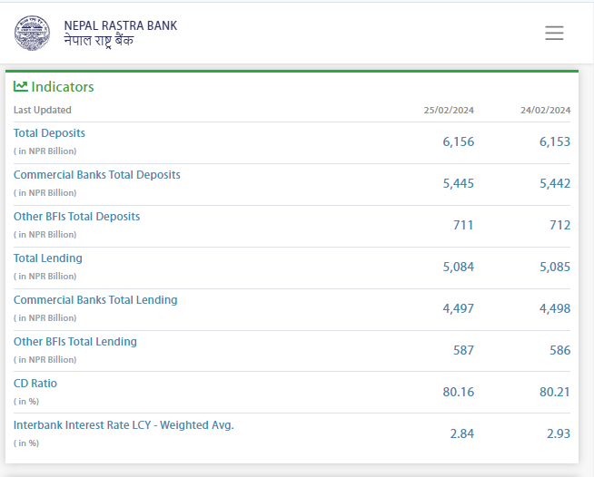 सिडी रेशियो केही घट्दै ८०.१६ प्रतिशत कायम भएको छ भने अन्तर बैंक ब्याजदर २.८४ प्रतिशत छ ।