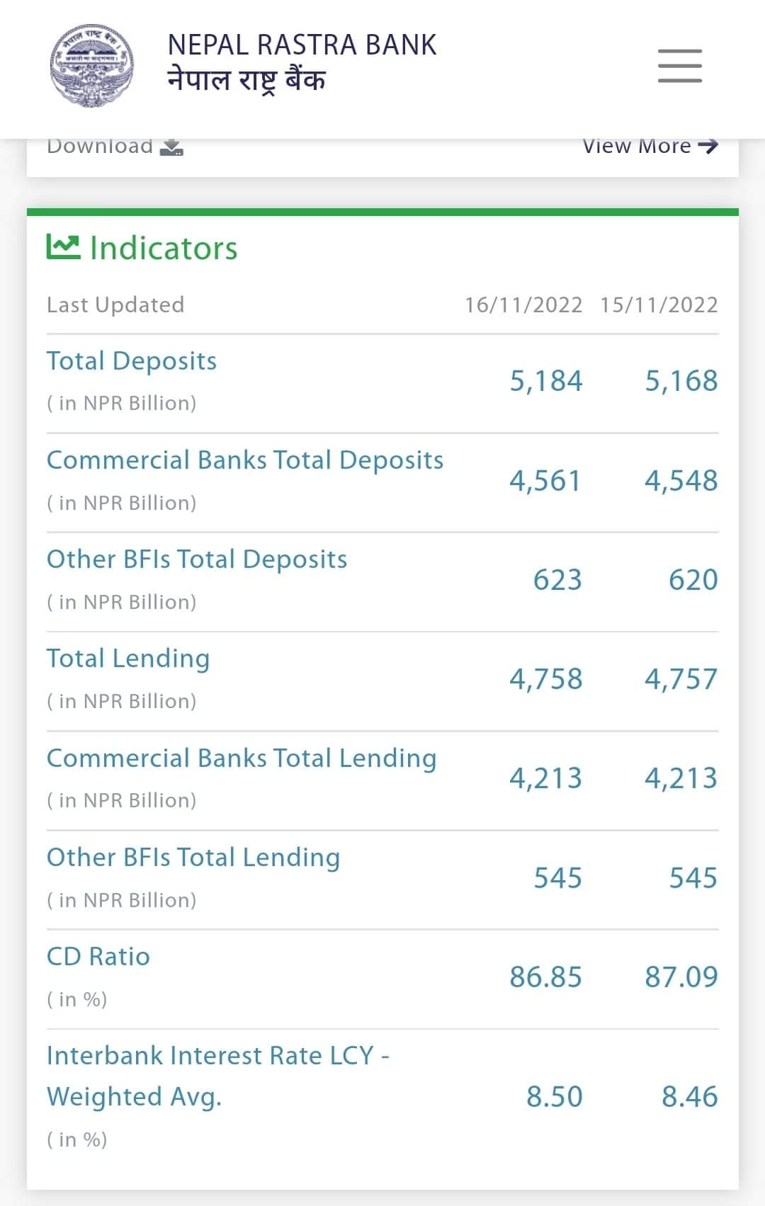 प्रणालीमा निक्षेप आउने क्रम सँगै सिडी रेसियो ८६.८५ प्रतिशतमा झरेको छ । चुनावको कारणले कर्जाको माग छैन । कर्जा प्रवाह नभइ निक्षेप मात्रै थुप्रिदा अहिलेलाई तरलता सहज देखिएको हो । कार्तिक मसान्तसम्ममा बाणिज्य बैंकहरुले १३ अर्बले निक्षेप बढाएर ४५ खर्ब ६१ अर्ब पुर्याउदा अन्य बैंक वित्तीय संस्थाले तीन अर्ब रुपैयाँ निक्षेप भित्र्याएका छन् ।