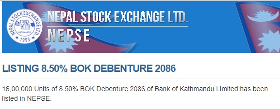 काठमाडौं । बैंक अफ काठमाण्डू लिमिटेडको ऋणपत्र नेप्सेमा सुचिकृत भएको छ । बैंकको ८.५० प्रतिशत बिओके डिबेन्चर २०८६” को १६ लाख कित्ता ऋणपत्र सूचीकृत भएको हो ।