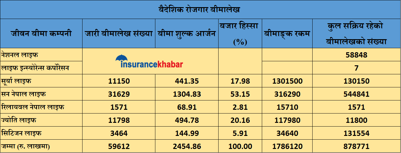 बैदेशिक रोजगार बीमाको ५३ प्रतिशत बजार सन नेपालको कब्जामा, कुन कम्पनीको कति (सूचीसहित)