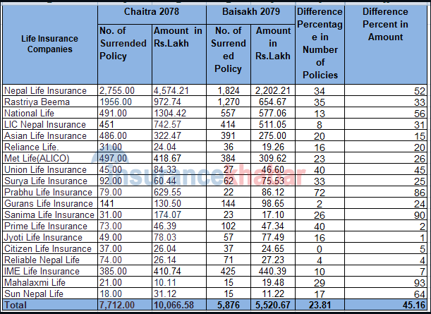 बैंक तथा वित्तीय संस्थाबाट लिएको कर्जाको ऋण वा साँवा समेत त्रैमासमा जसरी पनि भुक्तानी गर्नुपर्ने बाध्यतामा रहेका बीमितले बीमालेख समर्पणबाट प्राप्त हुने रकमबाट रकमको जोहो गरेको हुन सक्छन् । यसबाहेक प्रत्येक त्रैमासको अन्त्यमा व्यवसायीक लक्ष्य हासिल गर्नको लागी बीमकले आफ्ना कर्मचारी र अभिकर्तालाई जसरी पनि व्यवसायीक लक्ष्य पुरा गर्न दबाब दिइरहेका हुन्छन् । त्यसको असर पनि गत चैत्रमा बीमालेख समर्पणमा परेको हुनसक्छ ।
