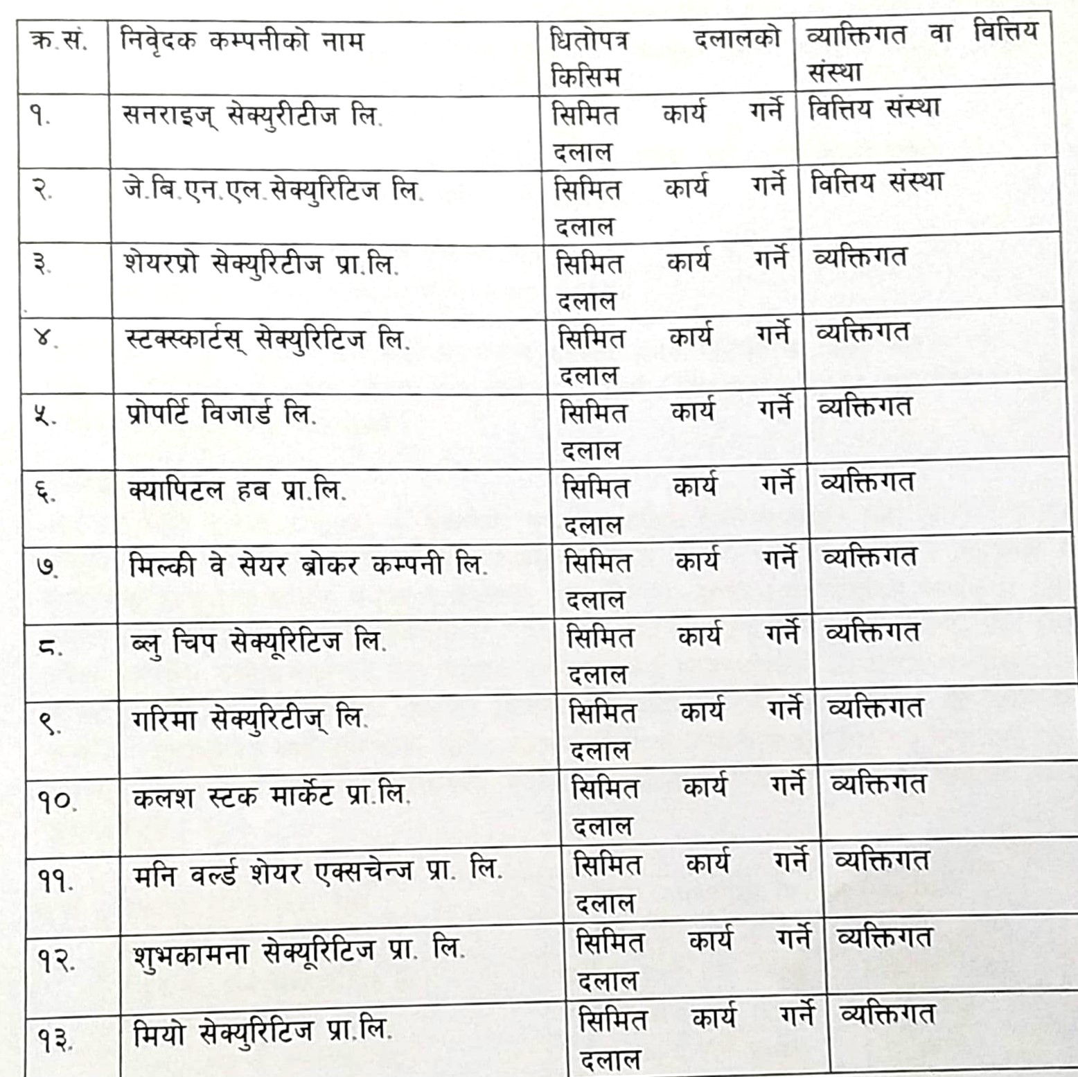 ब्रोकर लाइसेन्सका लागि थप १३ कम्पनीले पाए बोर्डबाट आशय पत्र