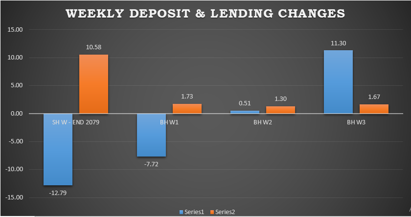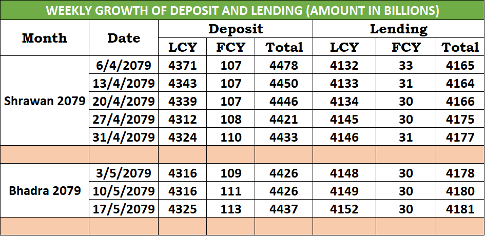 साउन महिनामा बाणिज्य बैंकहरुबाट ठुलो परिणाममा निक्षेप बाहिरिएको थियो । व्यवसायीले दशै तिहारका लागि विदेशबाट सामान आयातका लागि पैसा बाहिर पठाएका थिए । अर्को तर्फ पेट्रोलियम पदार्थको मूल्य आकासिदा पनि बैंकिङ प्रणालीबाट निक्षेप बाहिरिएको हो ।