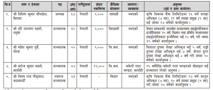 संचालकको जानकारी :