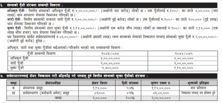चुक्ता पुँजी : २ करोड ( आईपीओ पछि )