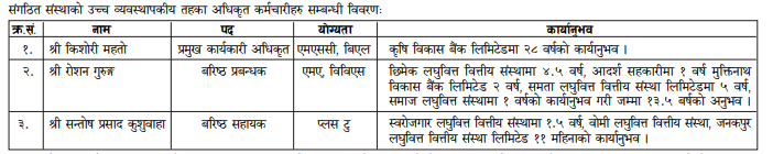 लघुवित्तको प्रमुख कार्यकारी अधिकृतमा किशोरी महतो छन् ।