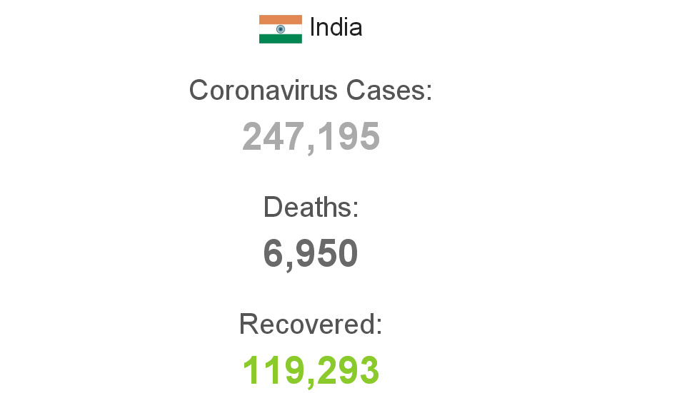 काठमाडौं । छिमेकी मुलुक भारतमा कोरोना भाइरसको प्रभाव बढ्दै जाँदा त्यसको प्रत्यक्ष असर नेपालमा समेत देखिन थालेको छ । भारतमा दैनिक १० नयाँ संक्रमित भेटिन थालेका छन् । वल्र्डमिटरर्सका अनुसार पछिल्लो २४ घण्टामा भारतमा १० हजार ४३८ जना नयाँ कोरोना संक्रमित भेटिएका छन् भने २९७ जनाको मृत्युवरण गरेका छन् ।