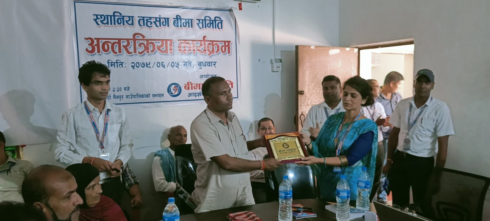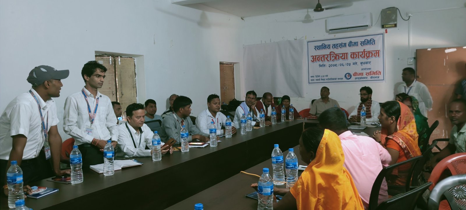 काठमाडौं । बीमा समितिको प्रादेशिक कार्यालय अन्तर्गतको मधेश प्रदेश कार्यालयले स्थानिय तहसँग बीमा समिति बिषयक अन्तर्क्रिया कार्यक्रम पर्सा जिल्लाको ग्रामिण भुभाग साथै भरतीय सिमानामा पर्ने पकहाँमैनपुर गाउँपालिकासँग गाउँपालिकाको सभाहलमा सम्पन्न गरेको छ ।