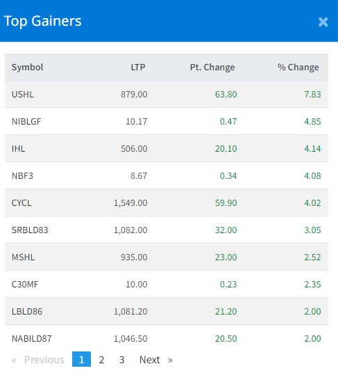 आज सबैभन्दा धेरै अपर स्याङगे हाइड्रोका लगानीकर्ताले कमाएका छन् । आज यस कम्पनीका लगानीकर्ताले ७ दशलमव ८३ प्रतिशतका दरले कमाएका छन् । आज नविल ग्रोथ फन्डका इकाईनीले ४ दशलमव ५८ प्रतिशतका दरले कमाएका छन् ।