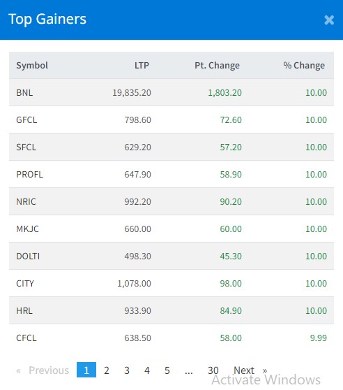 आज सबैभन्दा धेरै ९ कम्पनीका लगानीकर्ताले कमाएका छन् । आज बोटलर्स नेपाल बालाजू, गुडविल फाइनान्स, समृद्धि फाइनान्स, प्रोग्रेशिभ फाइनान्स, नेपाल रिइन्स्योरेन्स कम्पनी, मैलुङ खोला जलविद्युत, दोल्ती पावर कम्पनी, सिटिी होटल र हिालयन रिइन्स्योरेन्सका लगानीकर्ताले १० प्रतिशतका दरले कमाएका छन् ।