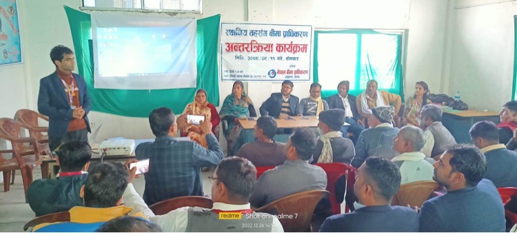 साथै उक्त कार्यक्रममा पालिकाका प्रमुख प्रशासकिय अधिकृतले यो कार्यक्रम निकै नै महत्वपूर्ण रहेको र यसका लागि हाम्रो पालिकाको कार्यालयमा आएर यस्तो कार्यक्रम राखि हामीलाई साथै हाम्रो सम्पूर्ण पालिकालाई जानाकारी उपलब्ध गराईदिनु भएकोमा धन्यवाद समेत दिएका थिए । साथै पालिकाको प्रशासकिय अधिकृतले यो कार्यक्रमले यस क्षेत्रका कृषकहरुलाई कृषि तथा पशुपन्छी लगायत अन्य सम्पत्तीको बीमा गर्नुपर्ने रहेछ भन्ने ज्ञान प्रदान गरेको धारणा राखेका थिए ।