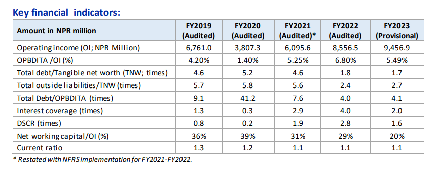 अघिल्लो आवमा कूल कारोबारमा ८८ प्रतिशत हिस्सा टिएमटी डण्डीको बिक्रीबाट प्राप्त आम्दानीले ओगटेको थियो भने बढेर ९४ प्रतिशत पुगेको थियो । डण्डीको कारोबार रकम बढेपनि बढ्दो प्रतिस्पर्धाका कारण यसबाट प्राप्त हुने नाफा घट्दै गएको छ। डण्डी, रिब्ड तार, बाइन्डिङ तार र एमएस बिलेट समेत उत्पादन गर्दै आएपनि डण्डीमा निर्भरता बढ्दै गएको छ। डण्डी उत्पादनका लागी आवश्यक पर्ने एमएस बिलेट उत्पादन शुरु भएपनि डण्डीको उत्पादन लागत घटेकाले प्रतिस्पर्धात्मक क्षमता बढाउन मद्दत गरेको रेटिङ एजेन्सी इक्रा नेपालले उल्लेख गरेको छ।