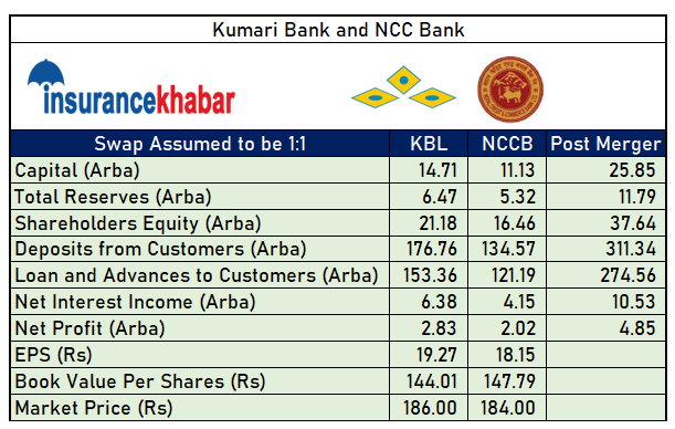 कुमारी बैंकको शेयरधनी कोषमा २१ अर्ब १८ करोड रहेको छ भने एनसीसी बैंकको शेयरधनी कोषमा १६ अर्ब ४६ करोड छ । मर्जर पश्चात बन्ने कम्पनीको शेयरधनी कोषमा ३७ अर्ब ६४ करोड हुने छ ।