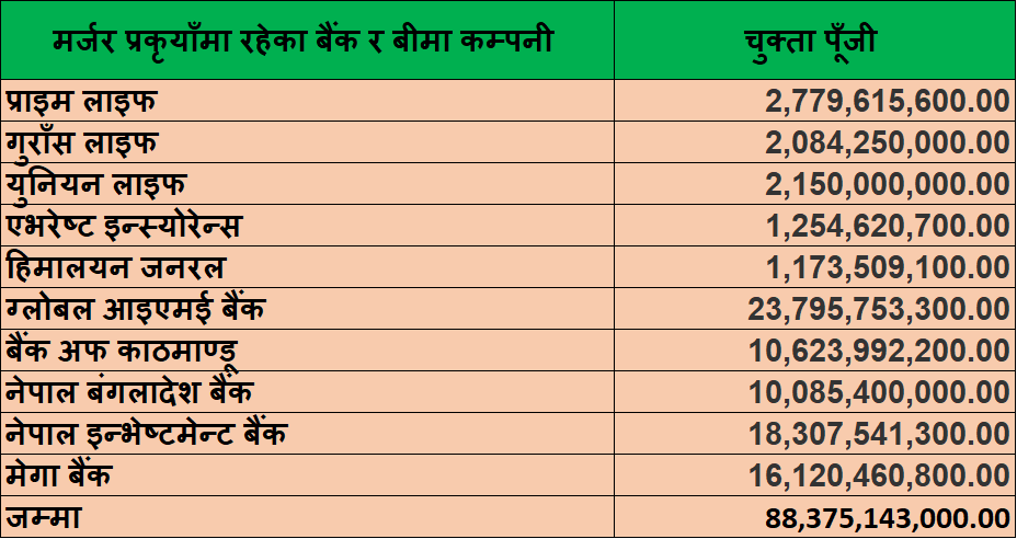मर्जर प्रकृयाँले ५ बीमा सहित १० कम्पनीको कारोबार रोक्का, ८८ अर्ब ३७ करोडको पूँजी बन्धक