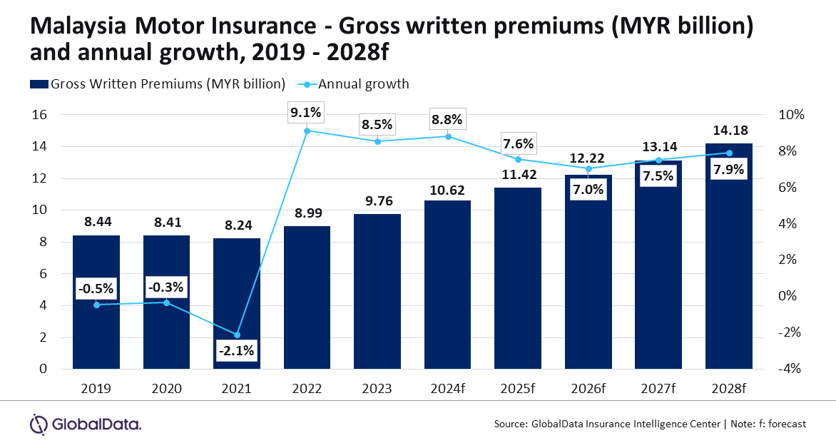 ग्लोबल डाटाले यस्तो प्रक्षेपण गरेको हो। ग्लोबल डाटाको अनुमानमा मलेसियाको गाडी बीमाको व्यापार विस्तारको वार्षिक वृृद्धिदर ७.५ प्रतिशत रहन सक्छ। जसअनुसार सन् २०२४ मा वार्षिक २.३ अर्ब डलरको प्रिमियम कलेक्सन बढेर सन् २०२८ मा ३.१ अर्ब डलर पुग्नेछ।