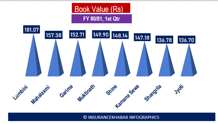 राष्ट्रिय स्तरका ८ विकास बैंकमध्ये लुम्बिनी विकास बैंकको किताबी मूल्य सर्वाधिक १८१ रुपैयाँ ०७ पैसा हुँदा दोश्रोमा महालक्ष्मी विकास बैंकको १५७ रुपैयाँ ३८ पैसा हुँदा ज्योति विकास बैंकको सबैभन्दा कम १३६ रुपैयाँ ७० पैसा छ।