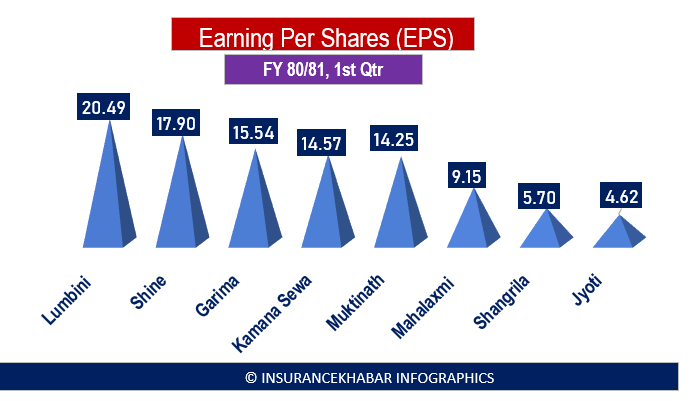 राष्ट्रिय स्तरका ८ विकास बैंकमध्ये लुम्बिनी विकास बैंकको प्रति शेयर आम्दानी सर्वाधिक २० रुपैयाँ ४९ पैसा हुँदा दोश्रोमा शाइन रेशुङ्गा डेभलपमेन्ट बैंकको १७ रुपैयाँ ९० पैसा छ ।