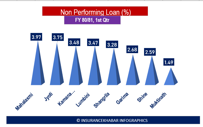 राष्ट्रिय स्तरका ८ विकास बैंकमध्ये मुक्तिनाथ विकास बैंकको खराब कर्जा सबै भन्दा कम एक दशमलव ४९ प्रतिशत हुँदा दोश्रोमा शाइन रेशुङ्गा डेभलपमेन्ट बैंकको २ दशमलव ५९ प्रतिशत हुँदा महालक्ष्मी विकास बैंकको खराब कर्जा सबै भन्दा धेरै ३ दशमलव ९७ प्रतिशत छ ।