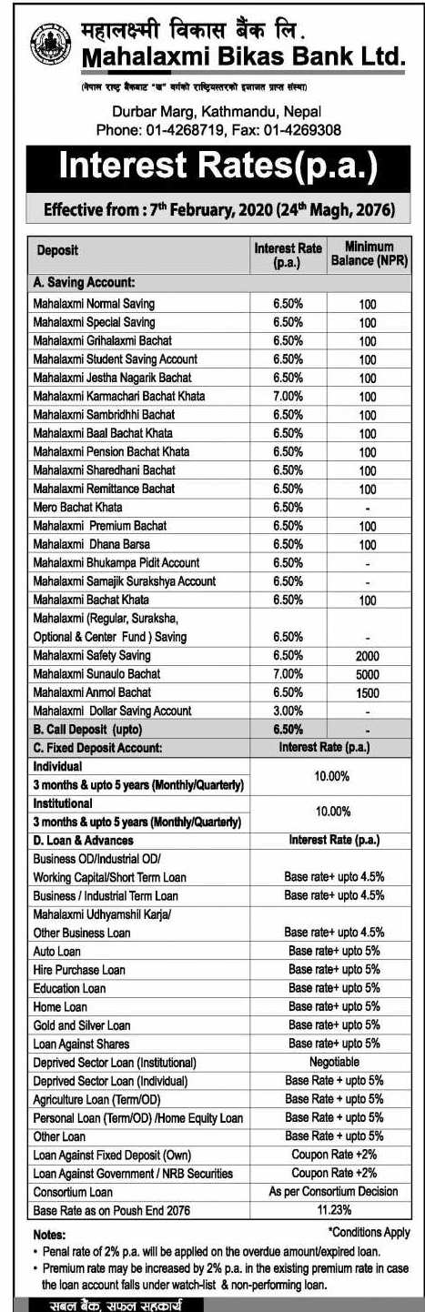 यस्तो छ महालक्ष्मीको नयाँ ब्याजदर :