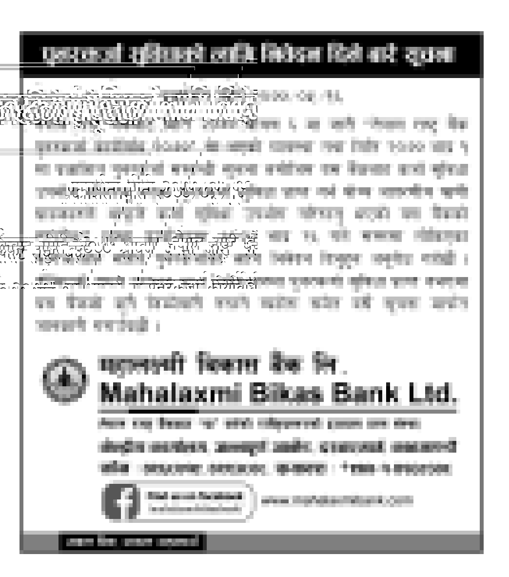 बैंकले आफुले कर्जा लिएको शाखा कार्यालयमा गई तोकिएको कागजात सहित भदौ २६ गतेसम्म आवेदन दिन आग्रह गरेको छ ।