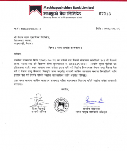प्रस्तावित लाभांश राष्ट्र बैंक र आगामी वार्षिक साधारण सभाबाट अनुमोदन भएपछि वितरण हुनेछ । हाल यसको चुक्त पुँजी ८ अर्ब ५ करोड ५ करोड रुपैयाँ छ ।