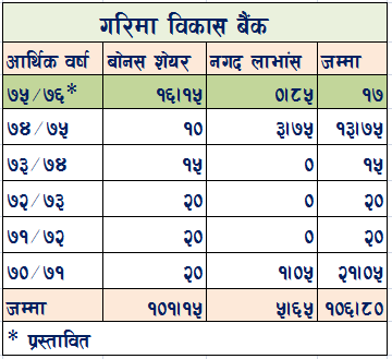 मुक्तिनाथ विकास जस्तै गरिमा पनि पुँजी वृद्धिमै लक्षित, के देखाउँछ लाभांसको ईतिहासले ?