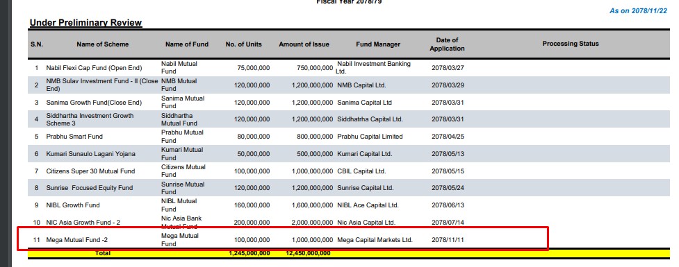 फण्डले प्रतिइकाई १० का १० करोड इकाई निष्काशन गर्नका नियामक निकाय नेपाल धितोपत्र बोर्डमा गत फागुन ११ गते निवेदन दिएको हो ।