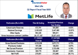 काठमाडौं । मेट लाइफ (अमेरिकन लाइफ इन्स्योरेन्स कम्पनी)ले चालु आर्थिक वर्ष २०८०।८१ को तस्रो त्रैमासको वित्तीय विवरण प्रकाशन गरेको छ।