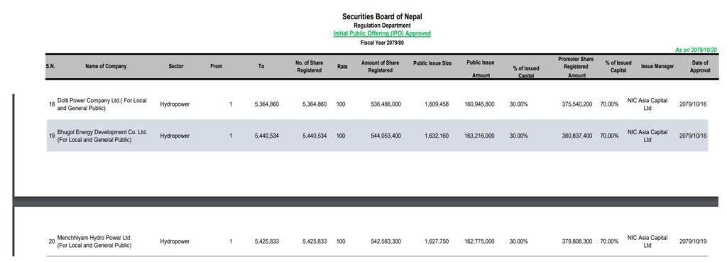कम्पनीको शेयर निष्काशन तथा विक्री प्रबन्धकमा एनआईसी एशिया क्यापिटल रहेको छ ।कम्पनीले आयोजना प्रभवित स्थानीय र सर्बसाधारणलाई गरि कुल १६ करोड २७ लाख ७५ हजार रुपैयाँ बराबरको १६ लाख २७ हजार ७ सय ५० कित्ता शेयर निष्काशन गर्न अनुमति पाएको हो ।