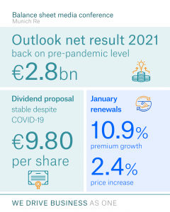 कोभिड १९ का कारण कम्पनीमा यस वर्ष ३.४ अर्ब युरोको दाबी परेको छ। सम्पत्ती बीमालेखबाट मात्रै तीन अर्ब युरोको दाबी परेको कम्पनीले जनाएको छ। त्यस्तै स्वास्थ्य पुनर्बीमालेखमा पनि ३७ करोड युरोको दाबी परेको छ।